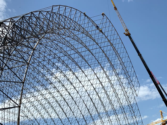 (2)网架加工前应对现场尺寸进行复测,确认无误后方可进行加工、安装;网架制作、运输、安装应遵守《空间网格结构技术规程》JGJ7-2010、《钢网架连云港螺栓球节点》JG/T 10-2009、《钢网架连云港螺栓球节点用高强度螺栓》 GB/T 16939-2016、《连云港钢结构连云港工程连云港施工规范》 GB50755-2012、《连云港钢结构连云港工程连云港施工质量验收标准》 GB50205-2020。